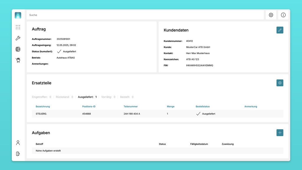 Die Anwendung bündelt eine intelligente, mandantenübergreifende Suche mit Echtzeitzugriff auf Kunden- und Geschäftsvorgänge. Sie vereinfacht den Wechsel zwischen verschiedenen Mandanten, verbindet Standorte miteinander und integriert sich nahtlos in bestehende Systeme wie ATBAS NET und ATBAS DEPOT. Ob am PC im Büro oder mobil in der Werkstatt – ATBAS Agent ist jederzeit im Browser verfügbar, ohne Installation.